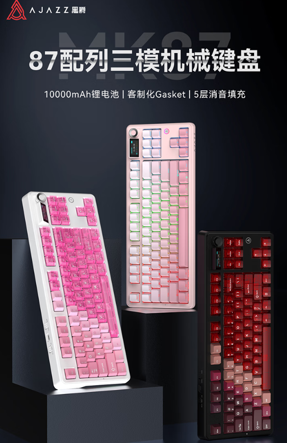 主焦點:87鍵無線三模 | Gasket麻將音 | 熱插拔定制 | 炫彩RGB | 10000mAh超長續航 |首發贈送手托+鼠標墊(價值158元)