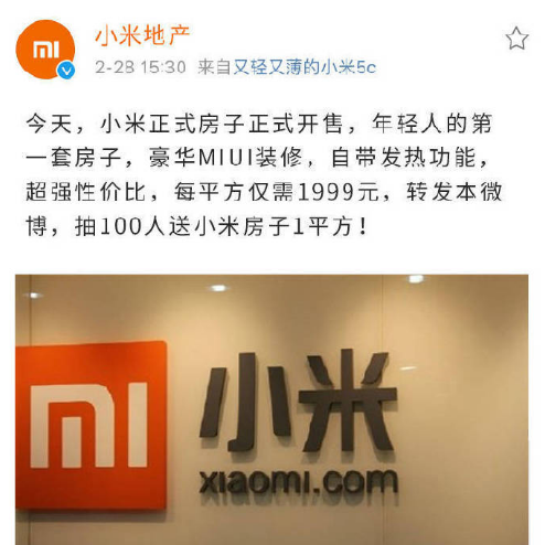 小米手機那經典的1999元的標桿價位,讓不少網友渴望小米進軍房地產行業,壓一壓高房價。雖然小米雷軍一再否認進軍房地產,但是關于小米與房地產行業的新聞也常被媒體們拿來炒作。前幾天關于小米與萬科合作建房的新聞讓不少人興奮,紛紛惡搞起小米進軍房地產來。