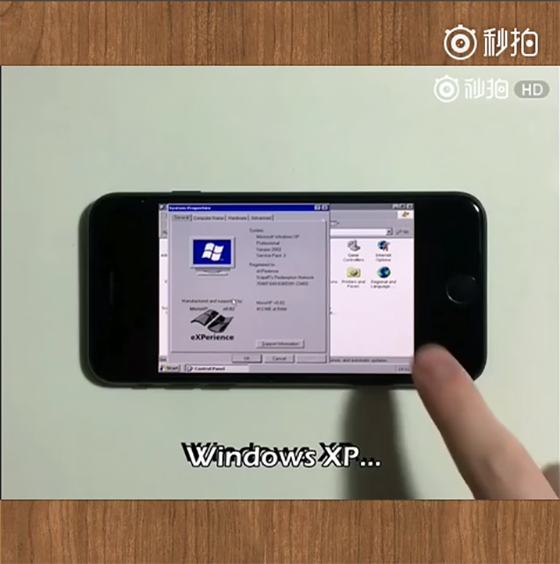 有一位動手能力強的外國友人成功的在搭載iOS10.2.1系統的iPhone7上運行Windows XP,不是廣大網友所說的圖片刷機法,而是實實在在的運行Windows XP,以下是視頻截圖。