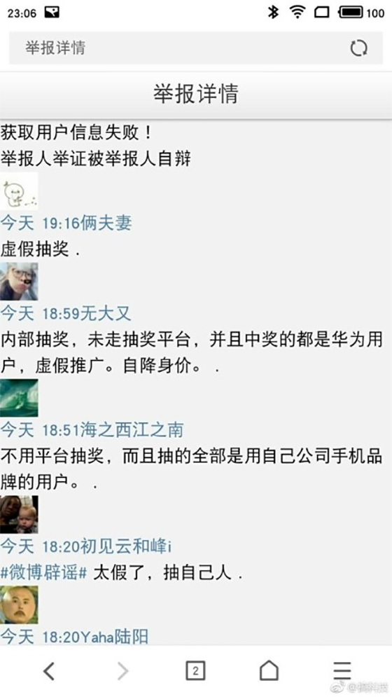 近日有不少網友將矛頭直指華為官方微博,紛紛舉報華為官方微博抽獎轉發存在黑幕,要么是說微博只轉發不抽獎,騙贊騙轉發,要么是內部抽獎,并且中獎的都是華為用戶或者是自己人。