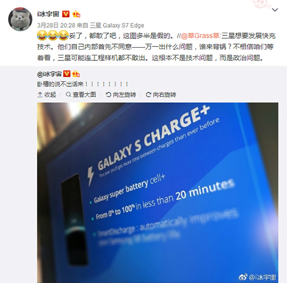 雖然后來爆料人i冰宇宙表示這圖可能是假的,但是很快遭到網友的反駁,并曬出三星SDI公司的黑科技報道圖,車用快充電池能夠充20分鐘,跑500公里,三星的Galaxy s charge+可能用的就是SDI的黑科技了。