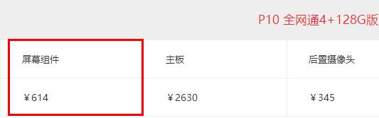 于是乎該網友順便查查P10全網通4+128G版的非保修常用維修配件參考價,意外出現了,P10的屏幕組件維修參考價為614元人民幣。