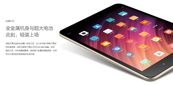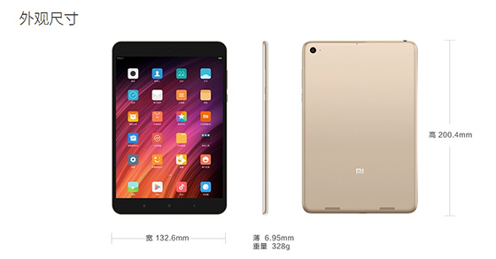 小米平板3:7.9英寸大小的視網膜2K分辨率屏幕,三圍為200.4mmx132.6mmx6.95mm,重量為328g