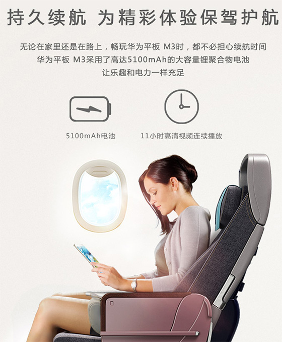 華為平板3則是5100mah大電池,支持5V/2A快充,能11小時高清播放。