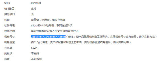 華為平板3:8.4英寸的IPS 2K分辨率屏幕,三圍為215.5mm×124.2mm×7.3mm,重量為310g