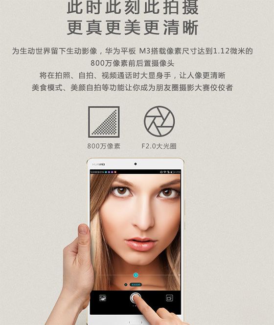 平板電腦大多是用來視頻的,拍照的用途不大,所以擁有800w像素前置相機的華為平板獲勝。
