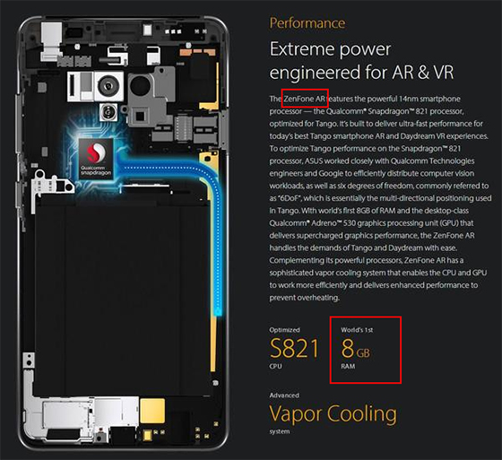 在今年的CES2017大會上華碩的ZenFone AR成為全球首臺擁有8GB運行內存的手機。