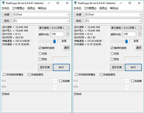 FastCopy是Windows平臺上最快的文件拷貝、刪除軟件。由于其功能強勁,性能優越,一時間便超越相同類型的所有其他軟件,我們用它來測試存儲設備的真實讀寫速度。我們拿一個10.2G的文件來做測試。