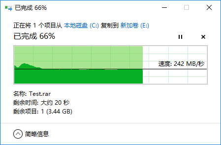 10.2G文件從C盤復制到測試盤的速度為242MB/s。