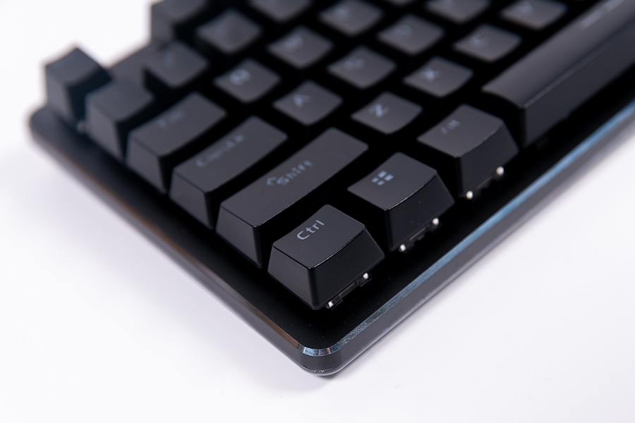 鍵盤的上蓋部分為鋁合金背板材質,撫摸上去有一絲冰涼的感覺,而在上蓋的邊緣部分還做了CNC高光倒角拋光處理,