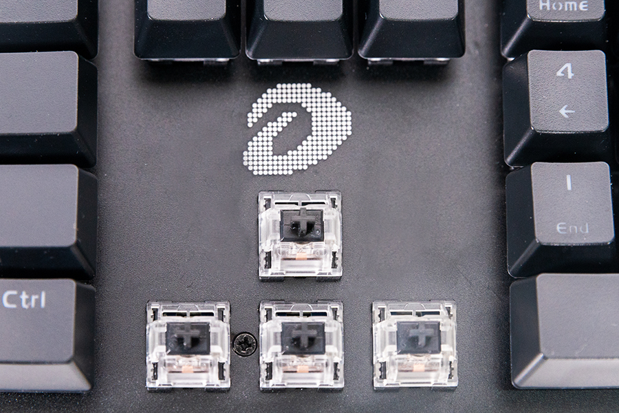 鍵盤的大鍵位則一體式平衡桿結構,鋼絲卡扣位于鍵帽的內部,手感的表現(xiàn)上也還不錯,保持了黑軸回彈迅速的特點,敲擊時沒有惱人的鋼絲聲。
