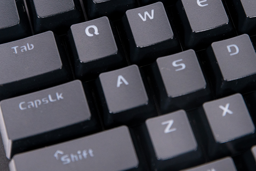 鍵盤采用了ABS二色注塑字透鍵帽,鍵帽的表面做了一層曬紋,相較于常見的ABS噴油鐳雕鍵帽不容易留下明顯的指紋,長時間的使用后外觀上相對更加耐看一些。