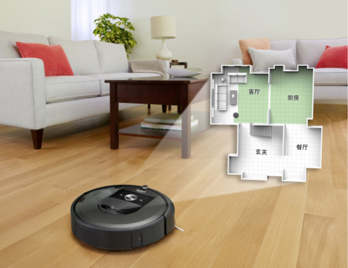 iRobot Roomba i7+掃地機器人搭載Imprint?智能規劃功能,能夠創建家具地圖,分得清廚房、客廳以及臥室,讓你輕松定制化房屋;并且Roomba i7+ 能夠記住多大10個不同的家具平面圖,即使你住在復式公寓,它也能識別不同樓層然后進行針對性的垃圾灰塵清理。