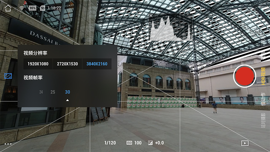 視頻拍攝方面Osmo Action支持16:9和4:3兩種比例的格式,最高支持100mbps碼率的4K60幀shop,并且還支持慢動(dòng)作,HDR視頻以及延時(shí)攝影,其中HDR視頻相比普通視頻在暗光和高光的細(xì)節(jié)還原上表現(xiàn)更加出色,不過(guò)缺點(diǎn)就是HDR視頻最高只支持30幀的幀率,并不支持高幀率拍攝。