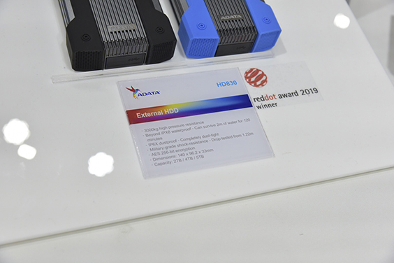 另外,威剛還展示了External HDD機械硬盤,該硬盤有2TB\4TB\5TB三種版本,體積為140*96.2*33mm。配置3000kg壓力電阻,支持IP6X級的防塵,IPX8級別的防水,能承受水下2米深度兩小時和1.22m的防跌落。