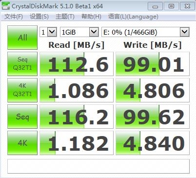 CrystalDiskMark讀寫測(cè)試(左圖第1次測(cè)試)(右圖第4次測(cè)試)