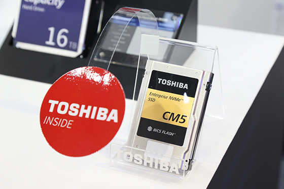 東芝重點(diǎn)在展會(huì)上陳列了3款硬盤,分別為東芝16TB容量的MG08系列企業(yè)級(jí)HDD,應(yīng)用于NAS服務(wù)的N300系列HDD,以及CM5系列的企業(yè)級(jí)NVME SSD。