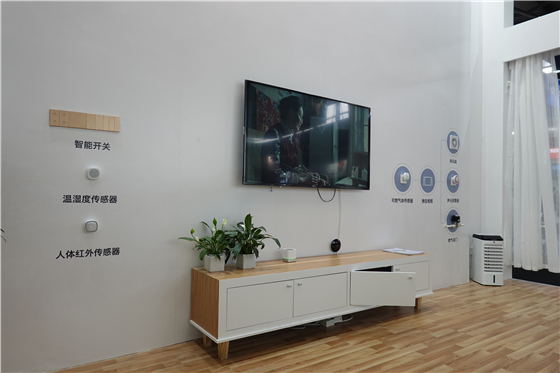 而這還不是它的真正用途。微信相冊支持智能家居zigbee協議和藍牙協議,即能夠作為智能網關與各種智能家居產品互聯控制。在微新聲智展臺上,包括智能門鎖、智能開關、各類傳感器、智能電視、燃氣閥門等AIOT組件共同構成了一個居家場景,演示了微信相框的智能節點作用。