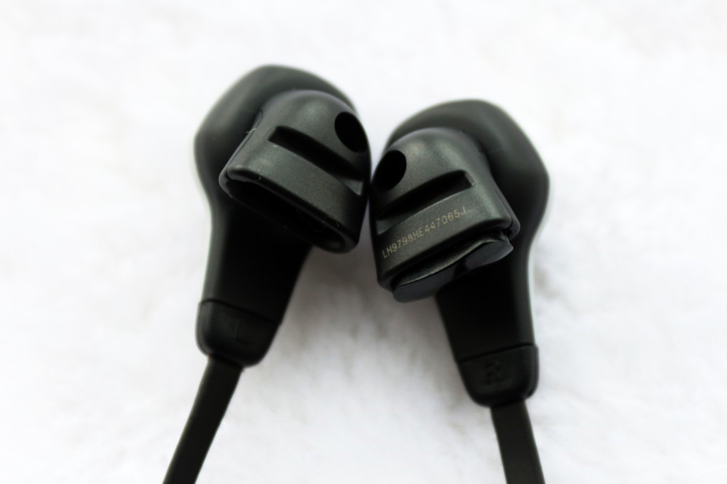 在耳機的耳柄處有L、R的標識,線控設置在R側耳機線上。R側單元下方有一個塑料塊一樣的東西就是心率監測模塊,在單元上還印有相關的數字信息。
