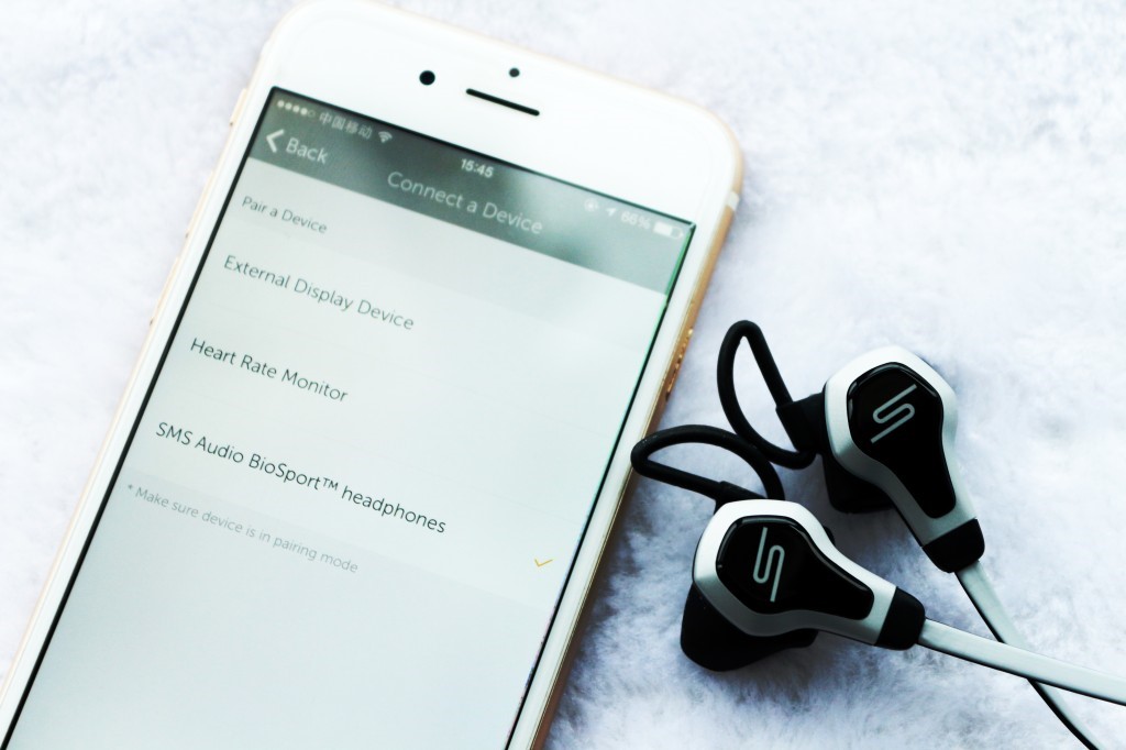 首先需要下載Runkeeper軟件,首次使用軟件的時候需要先將耳機插入到手機中,并且打開心率檢測模式,并且在軟件的設備連接選項中將SMS Audio BioSport headphones打勾。