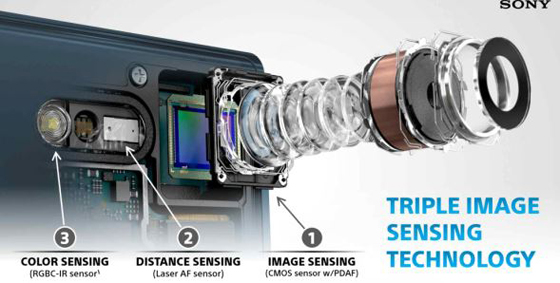 另外,攝像頭還繼承了索尼在相機領域的獨家技術,支持5軸防抖和三重影像傳感器,分別為Exmor RS for mobile圖像傳感器、激光對焦傳感器與RGBC-IR傳感器,這在手機領域可謂是突破性的創新。