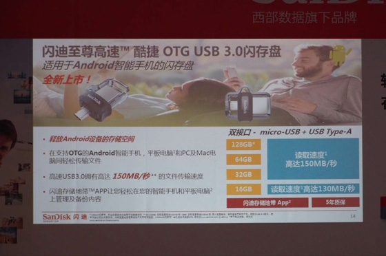 閃迪至尊高速酷捷OTG USB 3.0閃存盤是今天發布會的主打新品。產品本身結合時下流行的移動生活方式,專為安卓用戶打造,為用戶免去存儲容量的顧慮。
