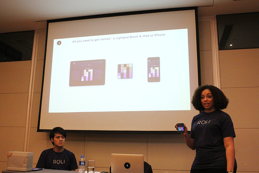 而在整個發布會中,絕大部分時間都是由ROLI的工作人員為我們演示 Lightpad Block的實際應用,小編也錄了一段視頻,大家可以看一下。