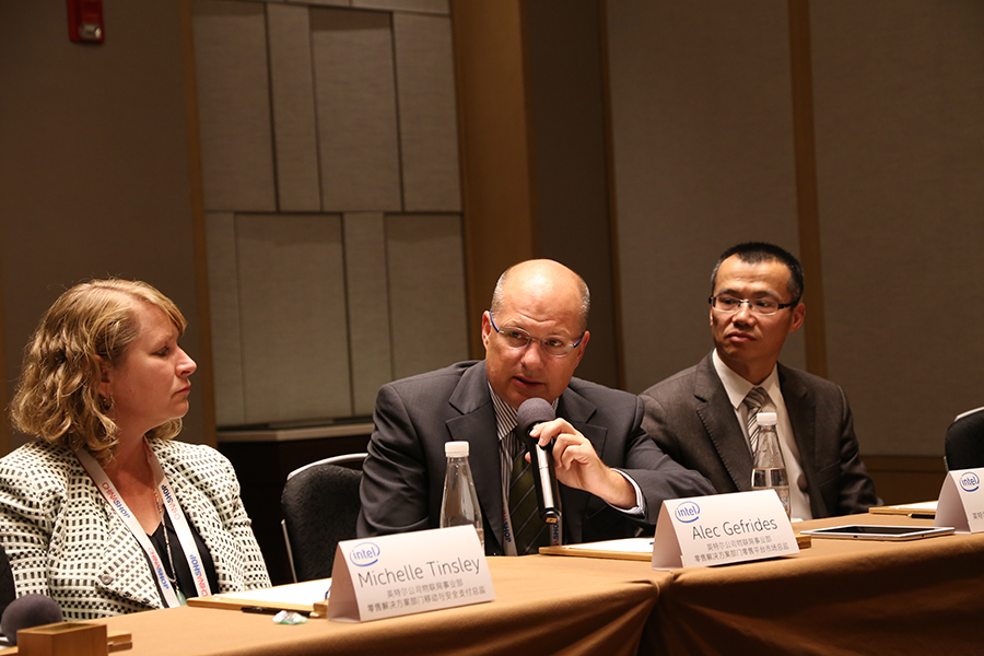 上午參觀過英特爾展區后,下午我們又對英特爾公司物聯網事業部零售產品銷售總監Alec Gefrides先生,英特爾物聯網事業部零售解決方案部門與安全支付的總監Michelle Tinsley女士,英特爾公司中國區物聯網產品營銷部產品經理徐軍先生進行了專訪,幾位高層也在專訪前為我們大致介紹一些本次展會的相關內容,并分享了英特爾對于零售行業結合物聯網O2O等方面進行了詳細的解答。下面,我們就來看一下會專訪的內容吧。