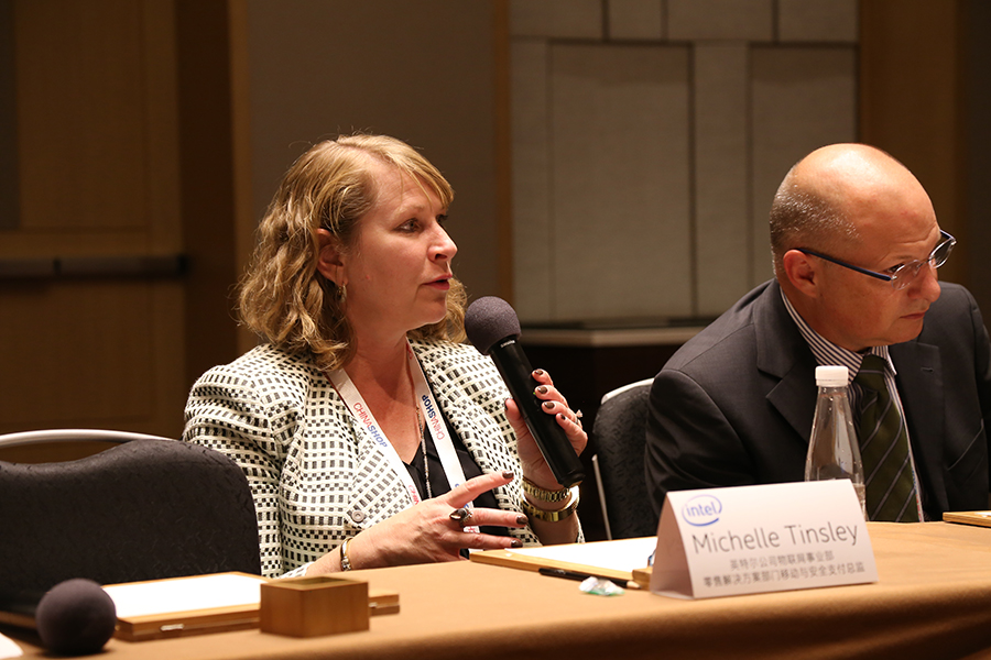 Michelle Tinsley女士:大家好,我是英特爾物聯網事業部零售解決方案部門與安全支付的總監,我跟Alec是同事,今天我的演講主要是講一下物聯網在零售行業的發展和影響,我們看到在全世界范圍內,已經有120萬個設備是相互連接,物聯網在中國具體體現就是O2O,對于零售業和客戶來說,物聯網帶來的價值就是他們可以體驗到更多的購物的體驗,并且獲得更多的價值,我們有這樣一種模式去取得一種新的類型的數據,讓我們更好的去理解客戶,英特爾的做法就是和全行業的合作伙伴共同進行合作,來促進這種消費體驗的產生,并且保證消費者在這個過程當中的個人信息安全,英特爾也非常高興在中國有很多強大的合作伙伴,能夠把這個解決方案推廣到全世界。