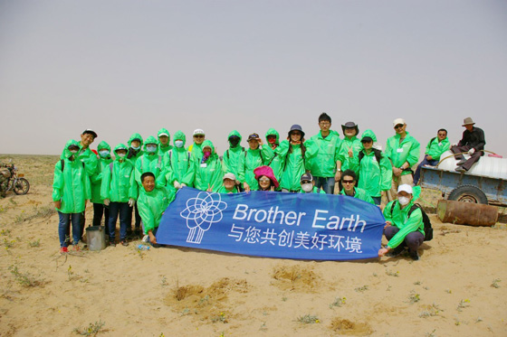 2012年以來,秉承“Brother Earth——與您共創美好環境”的環保理念,兄弟(中國)與OISCA合作,在內蒙古阿拉善共同開展防沙漠化項目。通過在當地植樹、挖掘水井、栽培中草藥以及養殖鴯鹋等方式,致力于改善當地居民的生活水平和生存環境,并促進當地孩子們的環保教育。而對于無法親自到當地參與防沙漠活動的公益人士, Brother還提供了“你點擊,我捐助”活動:登錄Brother Earth網站:http://www.brotherearth.com/ch/top.html,點擊“中國(內蒙古)”項目1次,Brother集團就會代表您捐出1日元來支持這個項目(每天僅可以點擊1次,可以累積)。