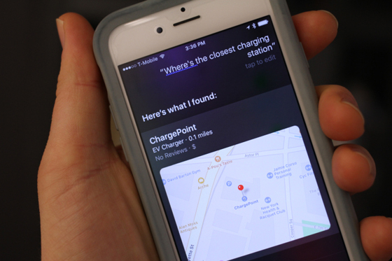 現在電動汽車越來越多,但電動汽車充電站卻相對很少,手機地圖上的充電站信息更少,想找一個電動汽車充電站往往要跑很遠。為了減輕電動汽車用戶在充電問題上的困擾,目前蘋果公司把電動汽車充電納入了蘋果的生態系統,并與ChargePoint合作,引入其數據在蘋果地圖上更新了約30000個充電站信息。在蘋果地圖上搜索充電站,會彈出充電站位置標記,現有的定價及工作時間等信息。蘋果語音助手Siri同樣支持搜索,對著Siri說“最近的充電站在哪兒?”Siri會給出相應的地圖信息,iPhone用戶還可以使用Apple Pay來付充電樁使用費。