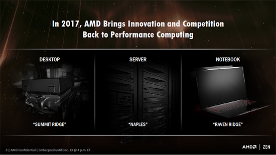 2016年12月13日,AMD在美國德克薩斯州舉辦了一場粉絲體驗會,公布了其全新的AMD Ryzen處理器。