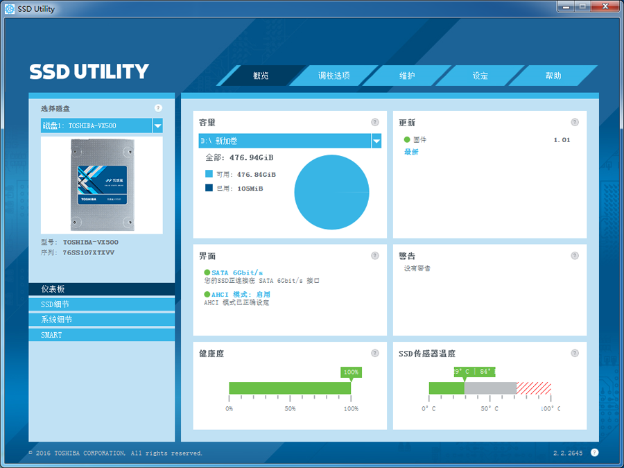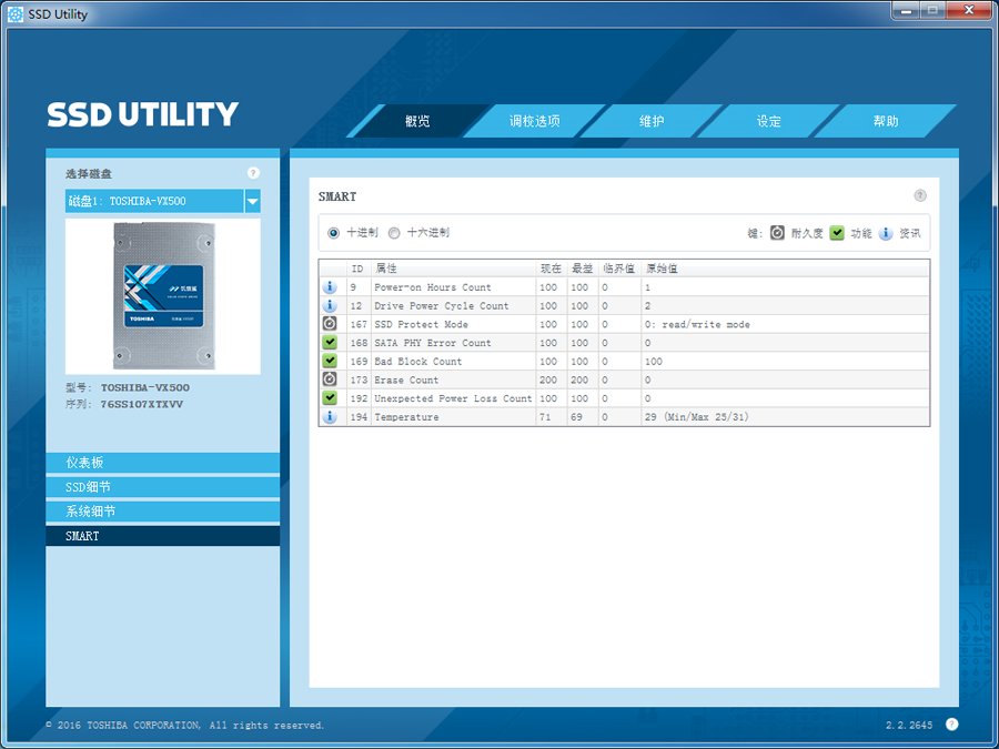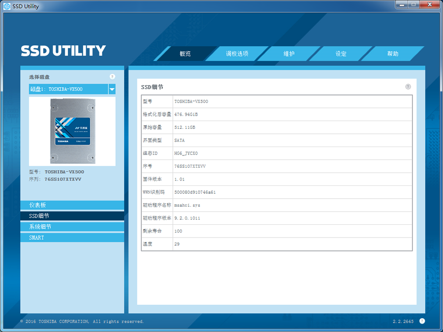 饑餓鯊VX500有一款配套SSD Utility管理軟件,軟件界面的相關(guān)截圖如上圖所示。