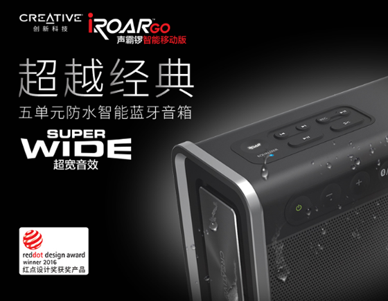 Creative秉承著聲霸鑼系列一貫的卓越品質(zhì)推陳出新,發(fā)布了iRoar Go聲霸鑼智能移動版音箱。iRoar Go憑借著藐視聲學(xué)法則的創(chuàng)新設(shè)計(jì)榮獲了德國紅點(diǎn)設(shè)計(jì)獎。輕巧的五發(fā)聲單元音箱為你呈現(xiàn)精準(zhǔn)強(qiáng)勁的音質(zhì);SuperWide超寬音效技術(shù)讓你身臨其境;移動端APP簡化為你使用步驟;IPX6防水設(shè)計(jì)無懼水濺,讓歡樂不間斷!