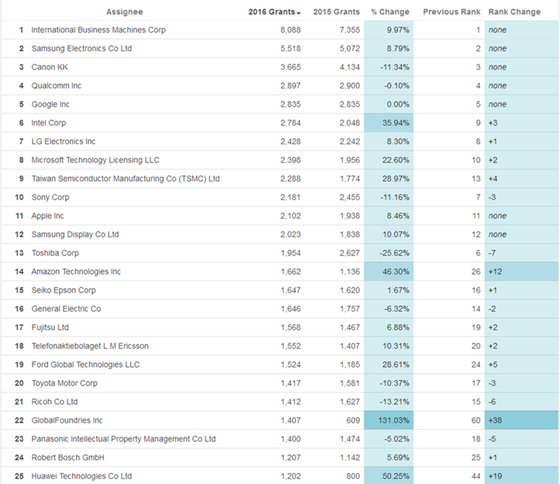2016年IBM獲美國專利數第一 華為入榜 蘋果未進前十