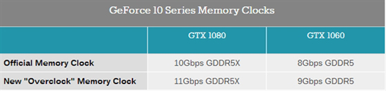 GTX 1080 Ti上使用的新一代GDDR5X顯存從10Gbps提高到11Gbps,老黃同時(shí)也將GTX 1080顯卡和GTX 1060顯卡的顯存進(jìn)行了升級(jí),分別提升到了11Gbps(舊版為10Gbps)和9Gbps(舊版為8Gbps)。