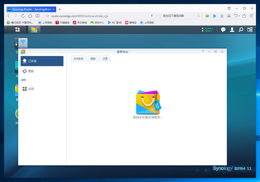 安裝完畢,下面就接上看看群暉RT1900ac無線路由器的SRM操作系統。可在PC和手機端設置,下面介紹SRM操作系統在PC端上的使用。