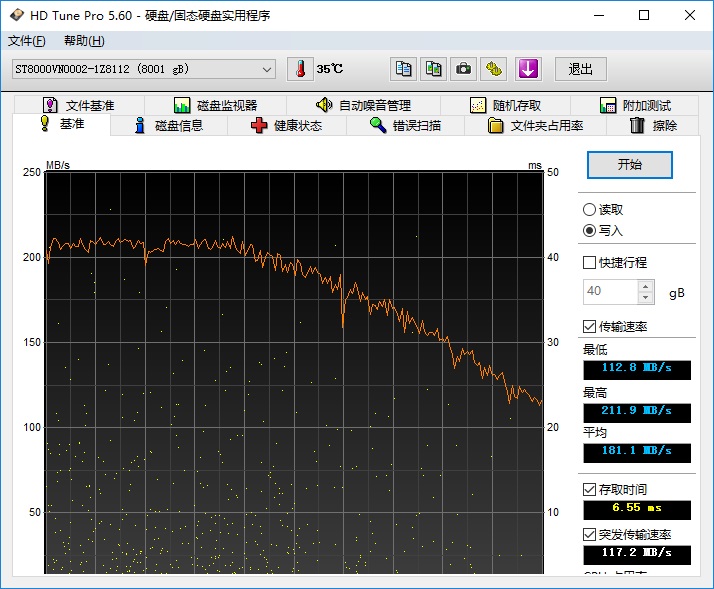 接著我們來測試硬盤性能,為了保證數據的可靠性,我們先把硬盤放在機箱里測試硬盤的速寫速度。