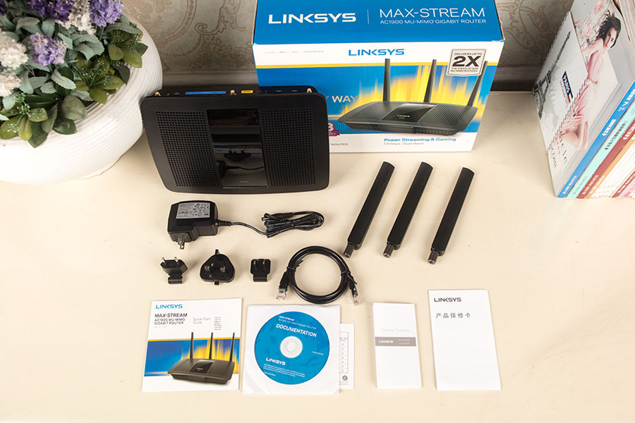國內上市的EA7500 V2和國外銷售的EA7500 V1外觀上保持一致,依然采用熟悉的藍白風格,正面最引人注目的便是MU-MIMO的支持及4K藍光的支持,同時提供3年質保。