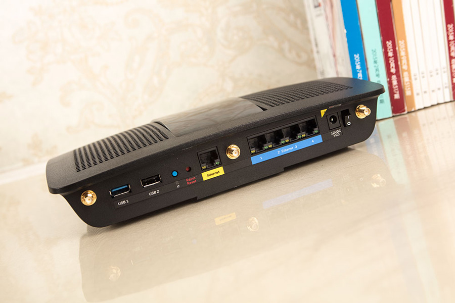EA7500 V2采用全千兆設計支持一進四出,基本能滿足家庭端口覆蓋的需求。無論是WAN還是LAN接口都設計有信號收發指示燈,可直接判斷各個端口的連接狀態。支持2個USB接口,其中一路為USB3.0,此外配有WPS按扭及重置鍵。