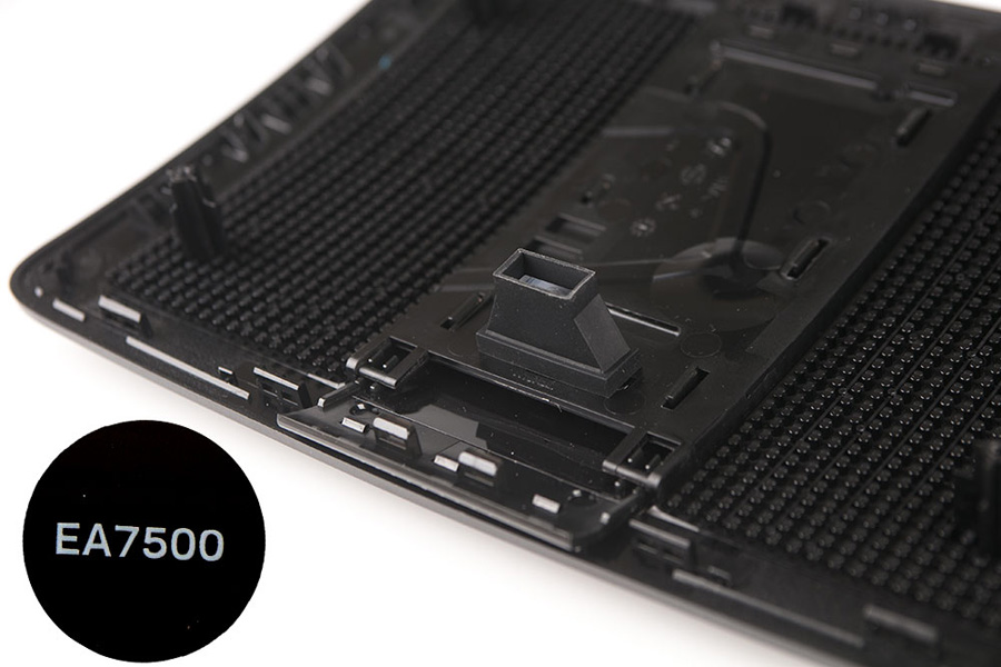 在頂蓋的LOGO燈區域設計有漏斗狀態的遮光罩,防止EA7500 V2在開機時指示燈的漏光。
