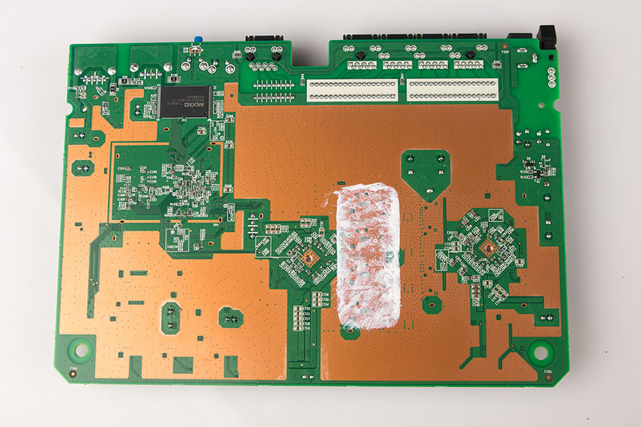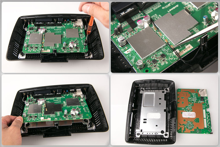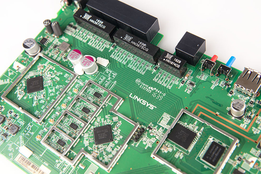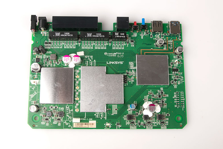 通過針腳的細節圖可見EA7500 V2的焊點飽滿圓潤,電路板排布工整,可見linksys嚴謹的做工設計。