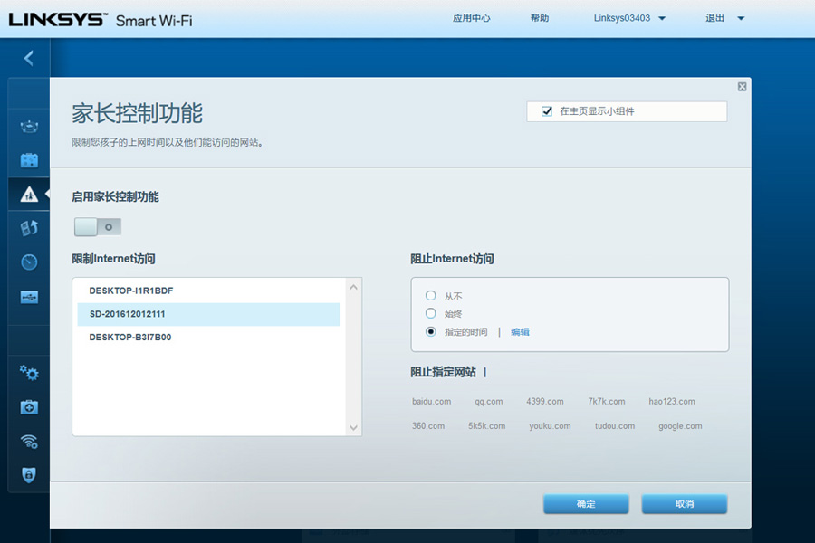 此外部對家庭應用開發家長控制功能可以爭對性地限制某個終端無法訪問的網站 ,不過最高數量為10個。