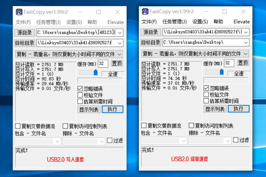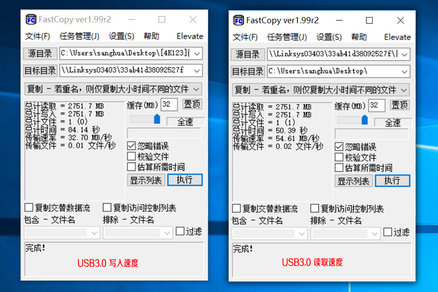 USB的測試采用掛USB3.0的SSD硬盤,同時使用fastcopy這個軟件復制一個2.8G的大文件進行測試,用fastcopy計算平均速度。