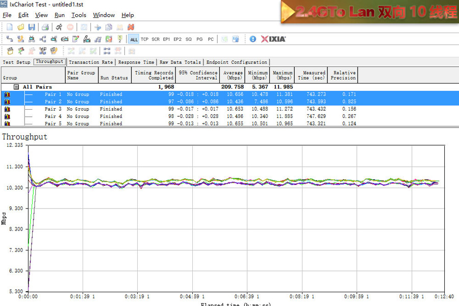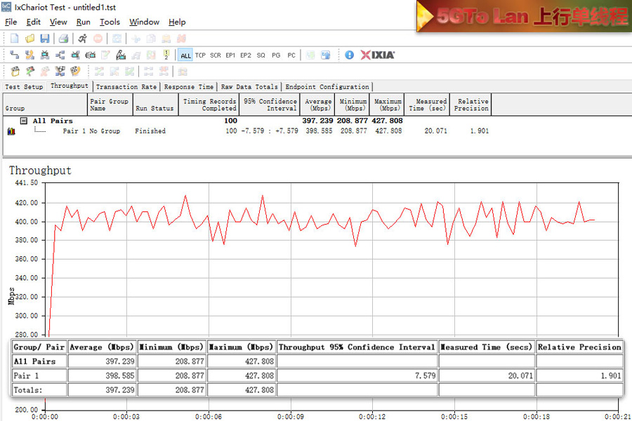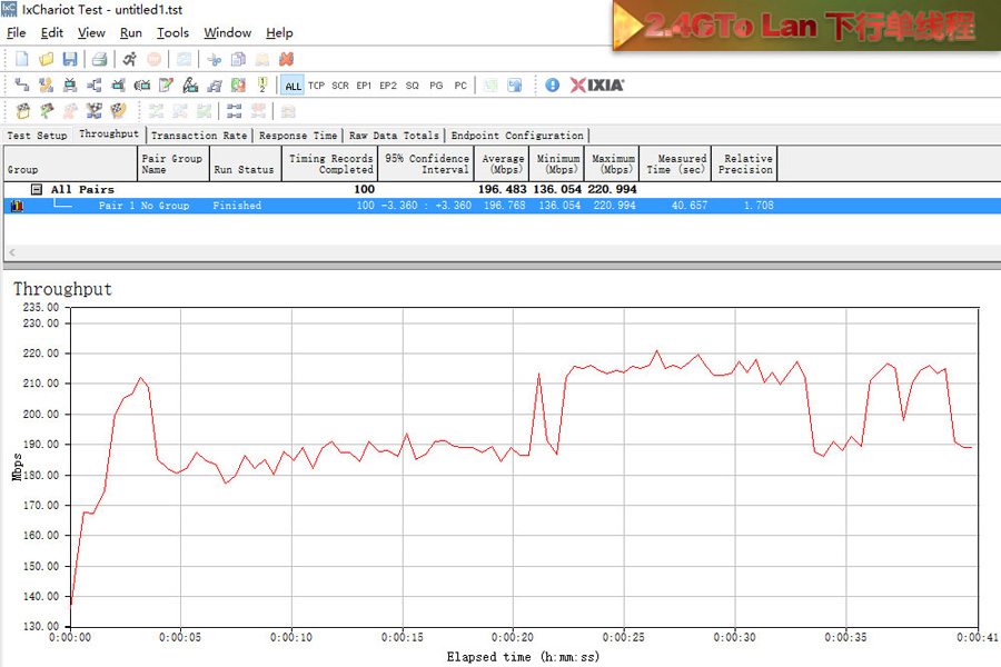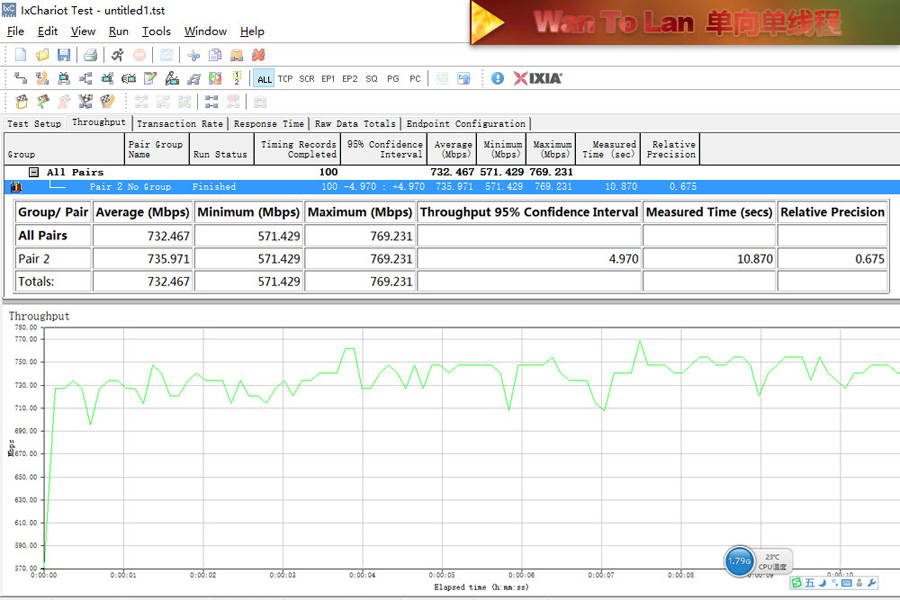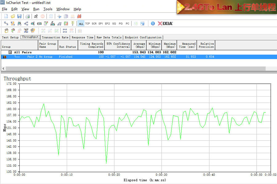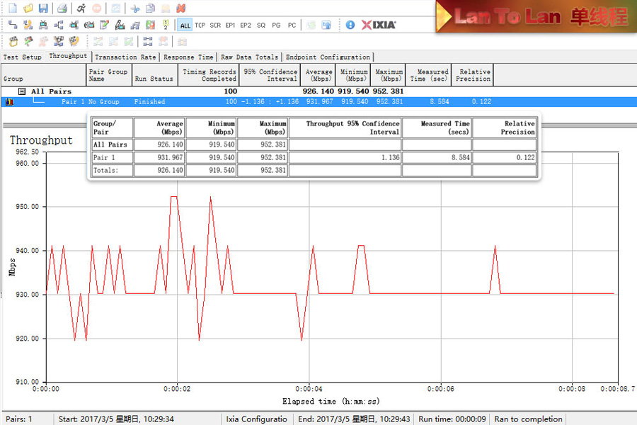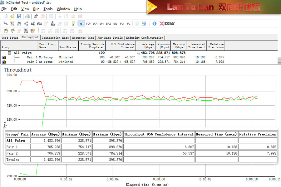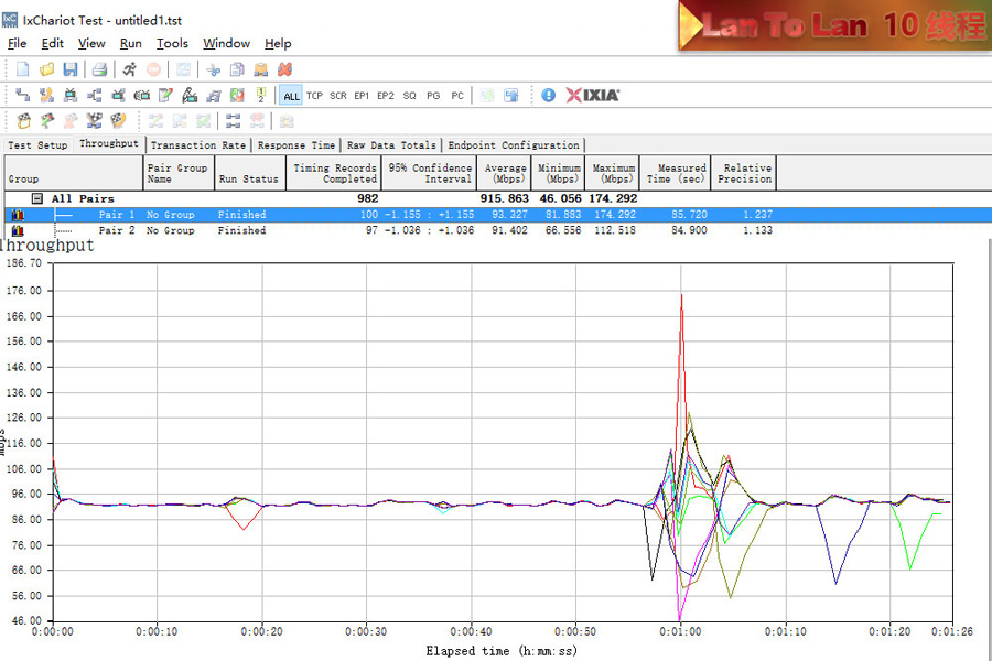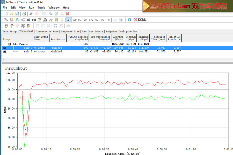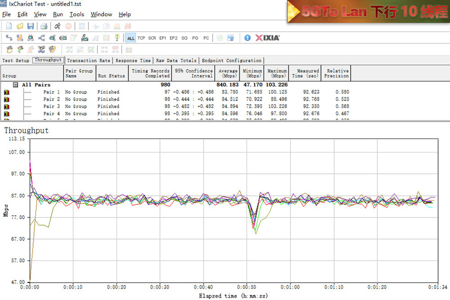 測試使用2臺帶SSD硬盤的電腦使用超5類原裝線連接,利用IxChariot測試記錄平均數值。