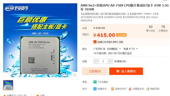 高性價比整合利器 AMD A8-7500熱賣中