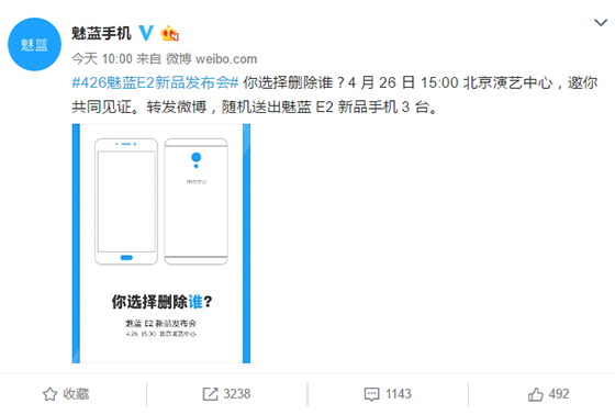 李穎坤 / 2017-04-12 11:27201481今天上午十點(diǎn),@魅藍(lán)手機(jī) 官方在微博上公布了新品魅藍(lán)E2的發(fā)布時(shí)間。從這條微博文案中我們可以獲取一些關(guān)于新品的相關(guān)信息,除了知道它將在4月26日北京演藝中心發(fā)布之外,還能了解到這次的魅藍(lán)新機(jī)將一改以往的套娃設(shè)計(jì)。而魅族科技副總裁也在微博上聲稱:這個(gè)月有魅藍(lán)發(fā)布會(huì),但不是這個(gè)魅藍(lán) 5x。新品是全新外觀,還有一些非常有趣的設(shè)計(jì)。