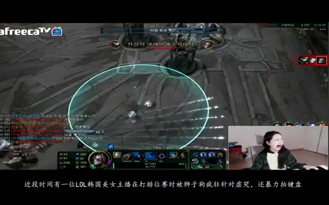 近段時間一位LOL韓國美女主播在打排位賽被獅子狗瘋狂針對被虐哭,還暴力