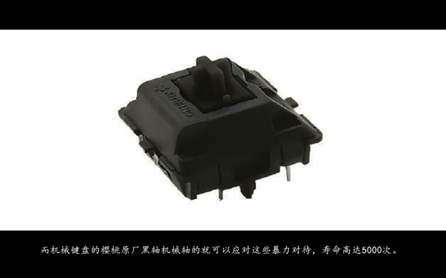 而機械鍵盤的櫻桃原廠黑軸機械軸的就可以應對這些暴力對待,壽命高達5000次。
