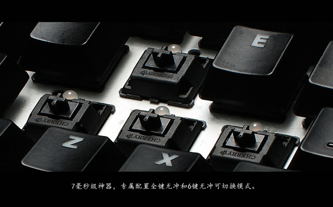 7毫秒級神器,專屬配置全鍵無沖和6鍵無沖可切換模式。